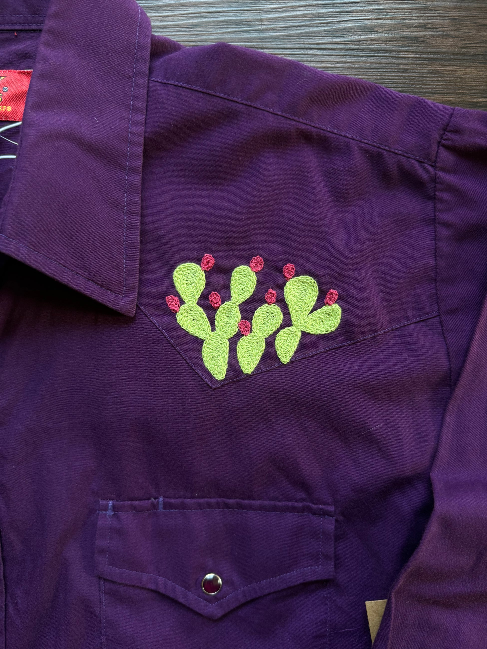 This is a 100% cotton piece embroidered using a wool blend thread. Machine wash inside out to keep stitches fluffy and intact. Avoid heat.
